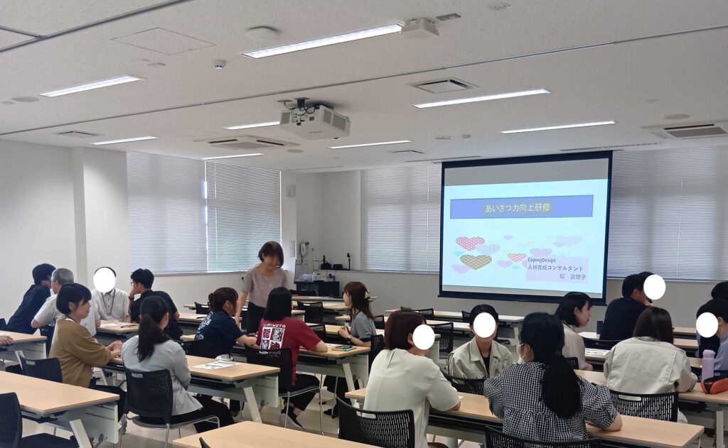 最近のあいさつのトレンドは?など、単に知識の習得でなく、実習とディスカッションのある濃い 1時間研修になりました。